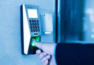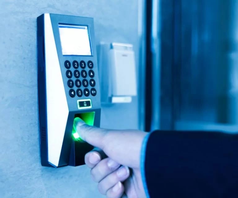 تركيب أجهزة التحكم بالأبواب وكروت الدخول وبصمة الوجه أو الإصبع.