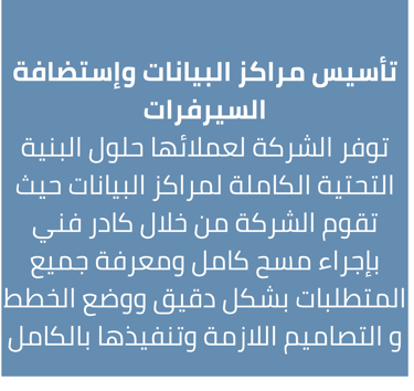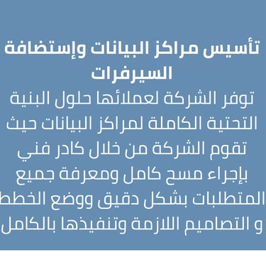 تصميم وتنفيذ شبكات LAN/WAN – تمديد كابلات UTP – تركيب سويتشات وراوترات – إعداد سيرفرات.